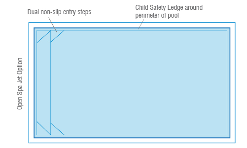 For safety, all our pools feature a safety step ledge (100mm wide) surrounding the entire perimeter.