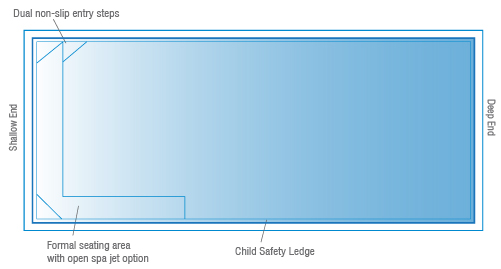 The Billabong swimming pool range comprises ten lengths and widths with options to suit all requirements. From a supersized 10.5-metre to a slimline 4.2-metre, this swimming pool design is perfect for today’s busy lifestyle.