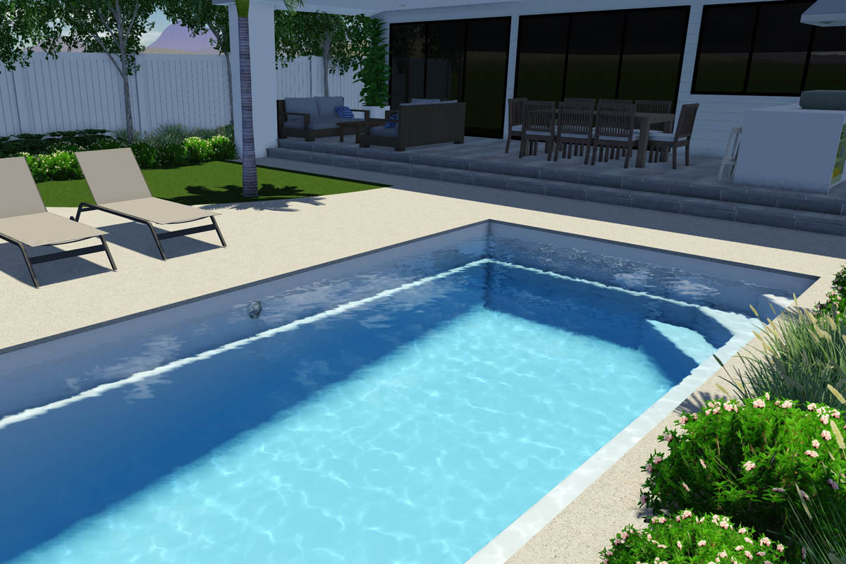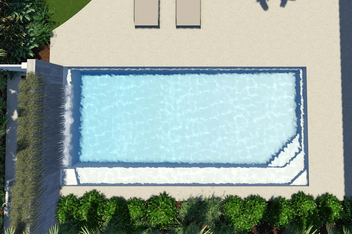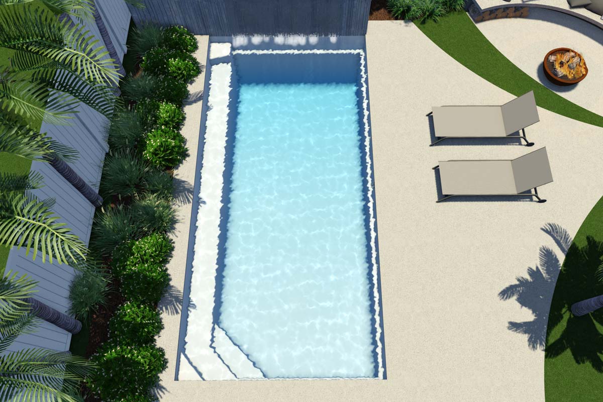 The Brampton Slimline is a contemporary fibreglass swimming pool design by Barrier Reef Pools, featuring strong geometric lines that complement both modern and traditional landscapes. This pool offers dual entry and exit points for versatile placement, a full-length bench seat for relaxation, and a spacious, unobstructed swimming area suitable for families and lap swimming. Additionally, it includes a child safety ledge running the length of the pool to ensure a safe environment for children.