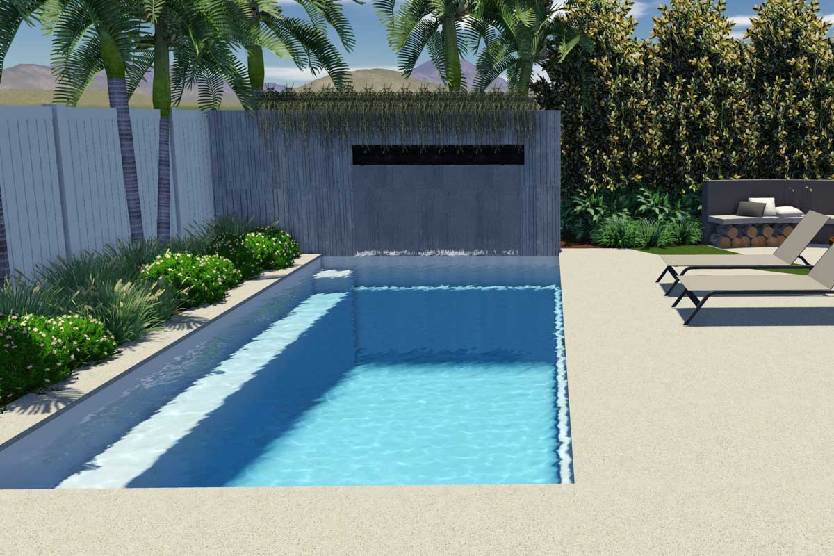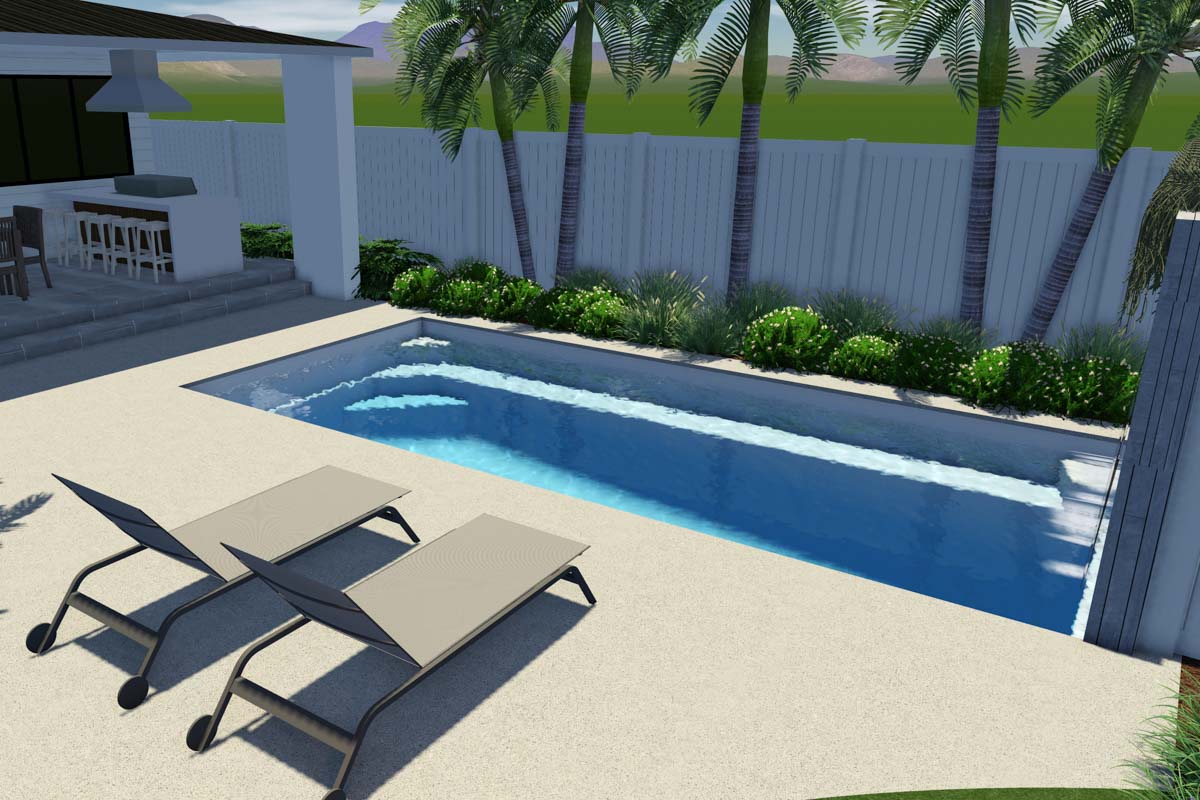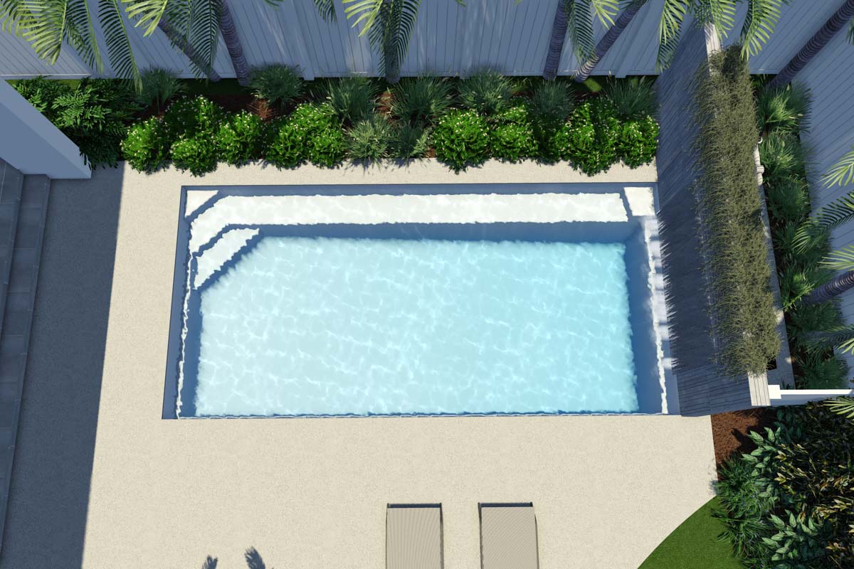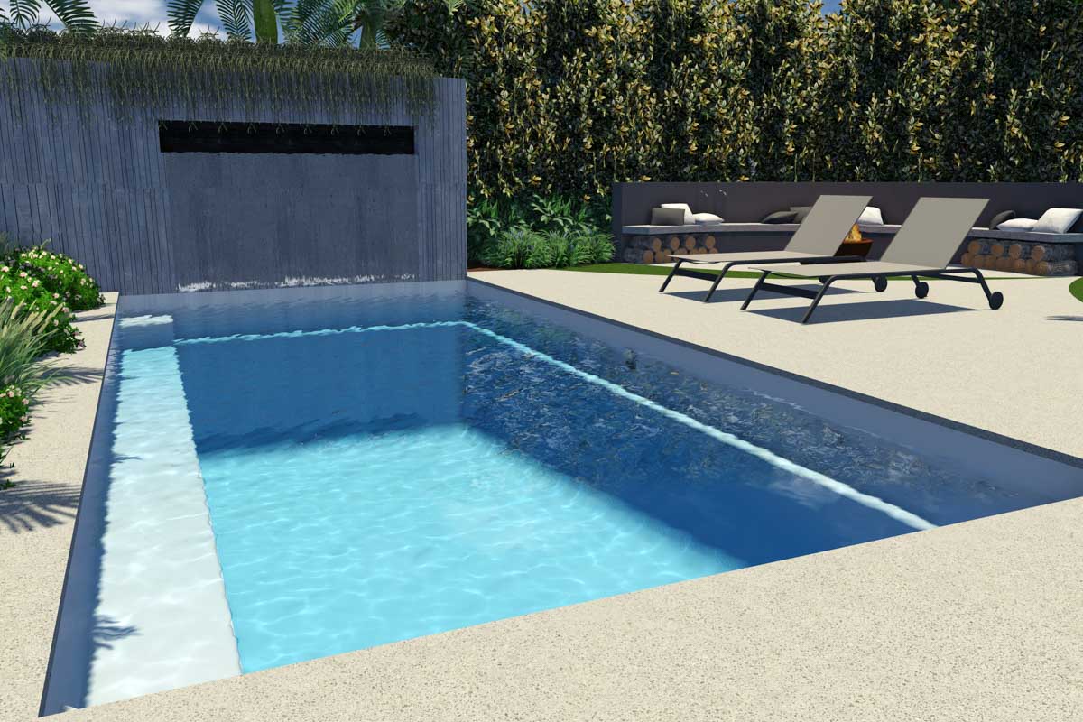 The Brampton Slimline is a contemporary fibreglass swimming pool design by Barrier Reef Pools, featuring strong geometric lines that complement both modern and traditional landscapes. This pool offers dual entry and exit points for versatile placement, a full-length bench seat for relaxation, and a spacious, unobstructed swimming area suitable for families and lap swimming. Additionally, it includes a child safety ledge running the length of the pool to ensure a safe environment for children.