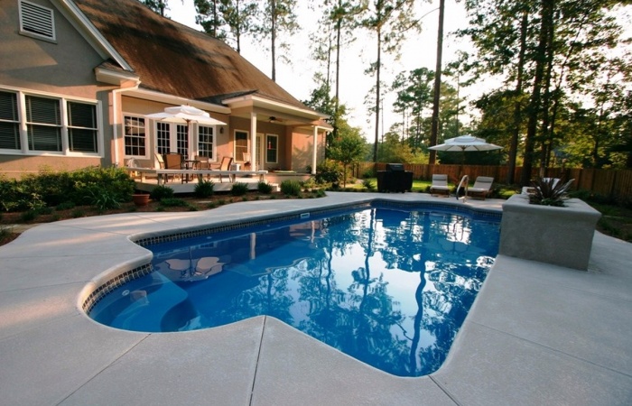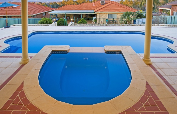The deep end formal seating area in this pool can be easily transformed into a relaxing spa nook, with the clean line design of this swimming pool complimenting your entertainment area.