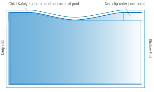 ALL POOLS HAVE A SAFETY STEP LEDGE (100mm wide) AROUND THE ENTIRE PERIMETER OF THE POOL.